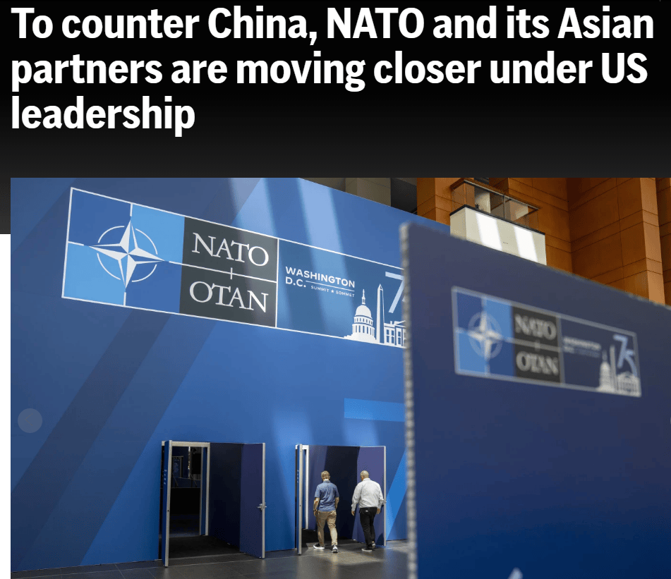 美聯社的標題就比這位秘書長的話好懂得多:“為了對抗中國,北約及其亞洲夥伴在美國的領導下正走得更近”。