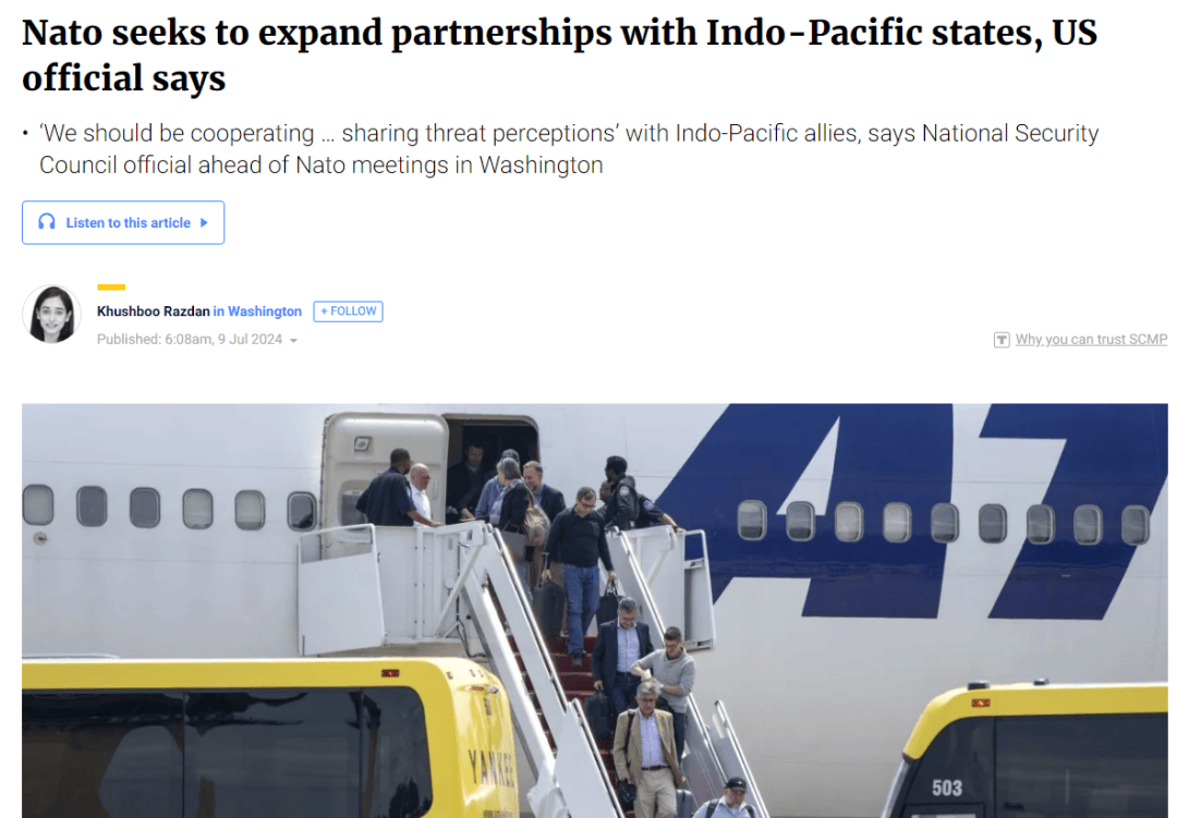 美國國家安全委員會官員在北約峯會前表示,北約尋求擴大與印太國家的夥伴關係。