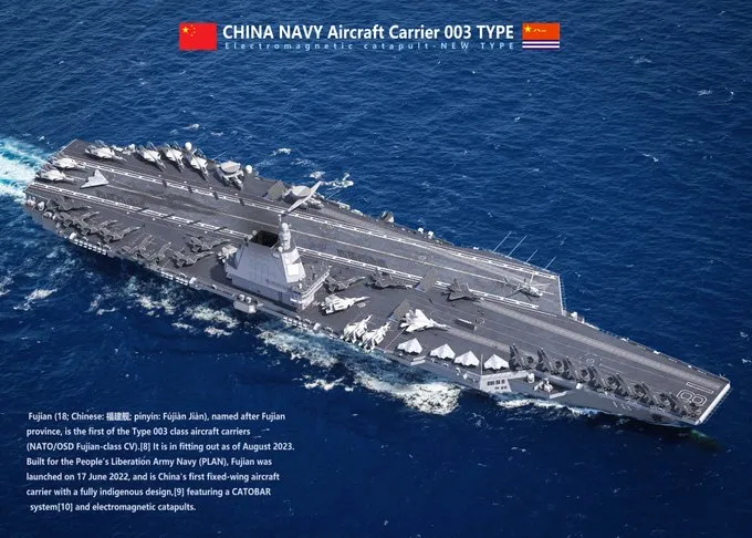 法媒認為,較大的尺寸並不是福建艦的唯一優勢,它還大量採用非常先進的技術,例如福建艦安裝的電磁彈射器只有美國“福特”級航母和法國未來的PANG航母會採用。它的艦載航空兵編隊將由45到60架飛機組成,包括彈射版殲-15T戰鬥機、殲-15D電子戰機、殲-35隱身戰機和空警-600空中預警機。此外,多型無人機和直升機將進一步完善福建艦的艦載航空力量,使其具備接近美國超級航母的作戰能力。