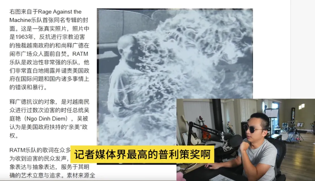 歌曲的人文立意綜合體現了一個藝術家對生活、哲學、宗教信仰、社會現象、社交關係等多個層次的思考與沉澱,歷史上有非常多技術簡單,但是立意深遠、影響力巨大的音樂作品,比如下面這首來自RATM的作品。