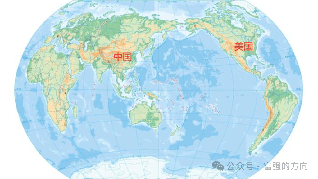 再看看中國與美國,是不是隔着太平洋的“門對門”?