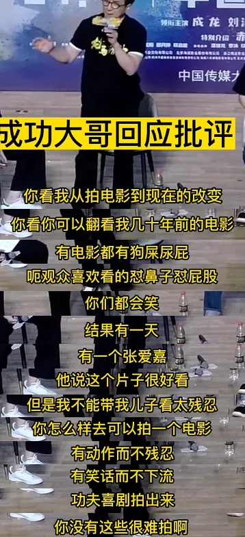 就像是去年,面對影迷對“成龍爛片”的質疑,他作出的如下回答——