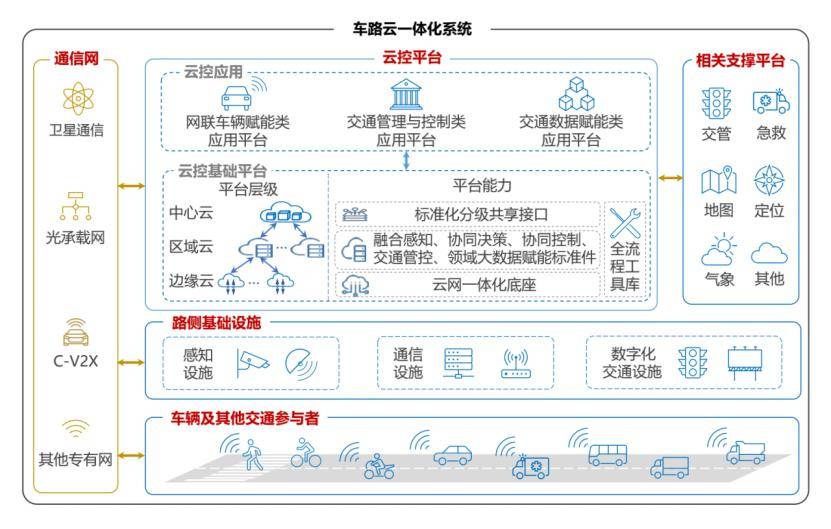 業內人士認為,FSD的發展始終受制於端到端模型的進化成效和車端計算能力。而且,安全長尾問題始終是制約高級別自動駕駛落地的主要因素之一,即使解決了90%的問題,但剩餘的10%卻需要投入百倍的精力才能攻克。因此,車路雲一體化作為安全係數更高的另一條路被放到前台,其關鍵是人、車、路、雲,對應的是交通參與者、車載終端、路側設施和雲計算的融合與聯動。