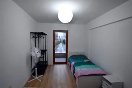 每個房間裏只安排一個落地風扇,如果運動員是兩人合住,那他們還得共用這颱風扇。