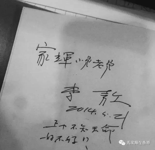 馬家輝與李敖,下圖為79歲李敖寫給51歲馬家輝的贈言