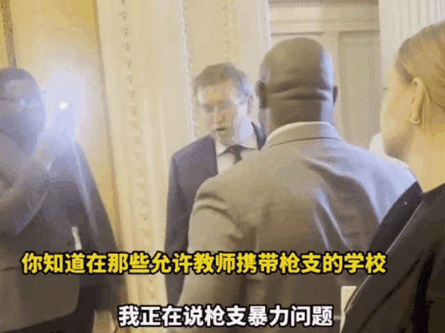 ▲2023年3月,美國民主黨國會議員賈邁勒·鮑曼(右)痛斥槍支暴力,共和黨國會議員托馬斯·梅西(左)則反駁“教師持槍的學校從沒有過槍擊案”,兩人吵作一團。