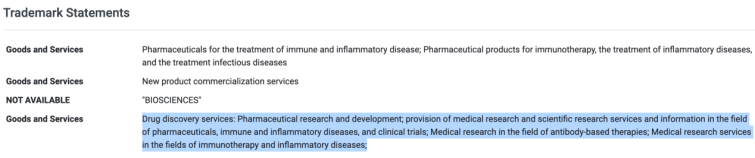根據Belenos的商標註冊信息來看,大概率是自免領域的雙抗產品。這也是海外頗為熱門的交易領域。