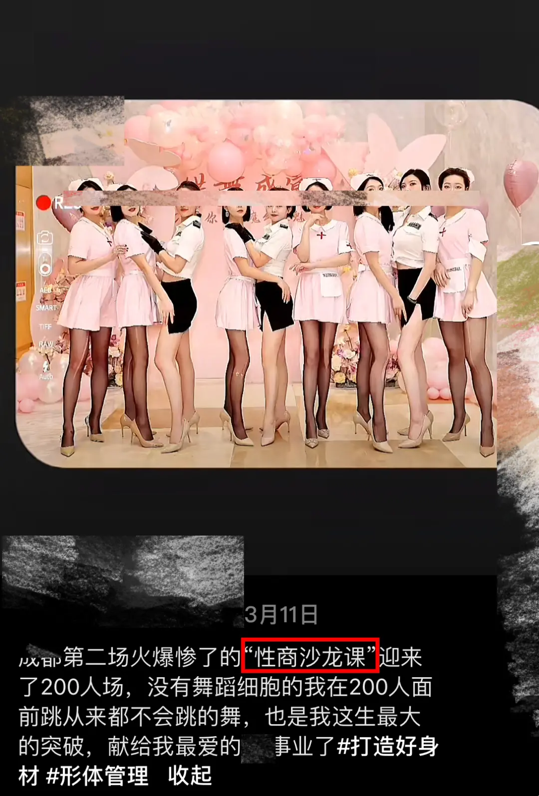 有網友扒出了該機構往期類似性商訓練營的現場錄像,大家才發現,小了,格局小了,《青蛇》的尺度跟這一比,就像蠟筆小新的家庭作業。