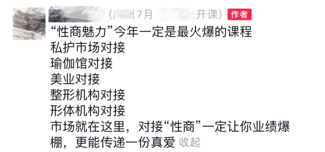 最近,一個叫“性商訓練營”的東西突然擠進了大眾視野,一張性商訓練營線下課程的宣傳海報在社交媒體上叮咣炸響,沒到一天就被傳出了電子包漿。