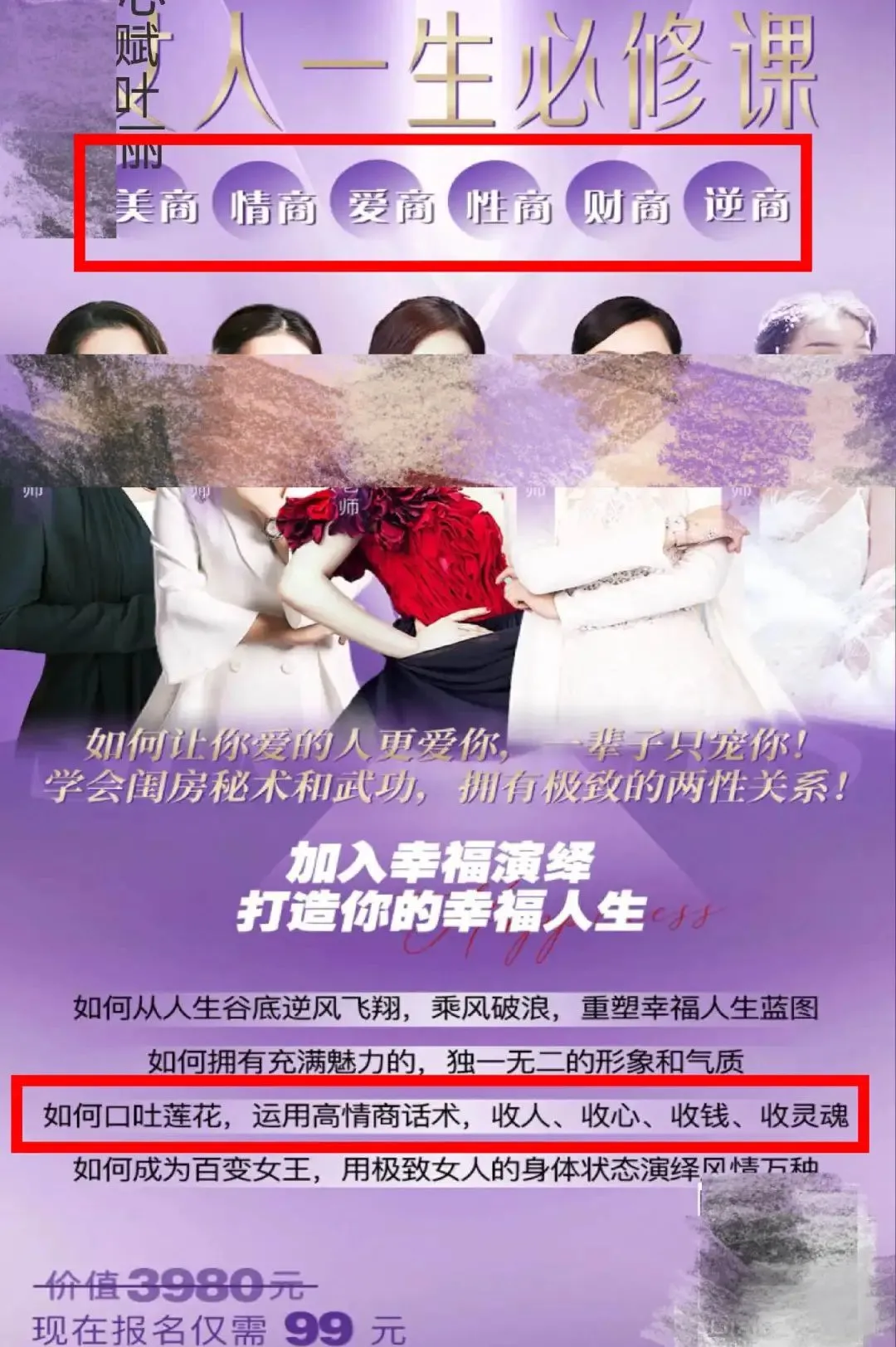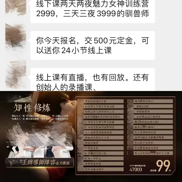不過看性商訓練營的課程説明,他們想掙誰的錢,可謂一目瞭然。