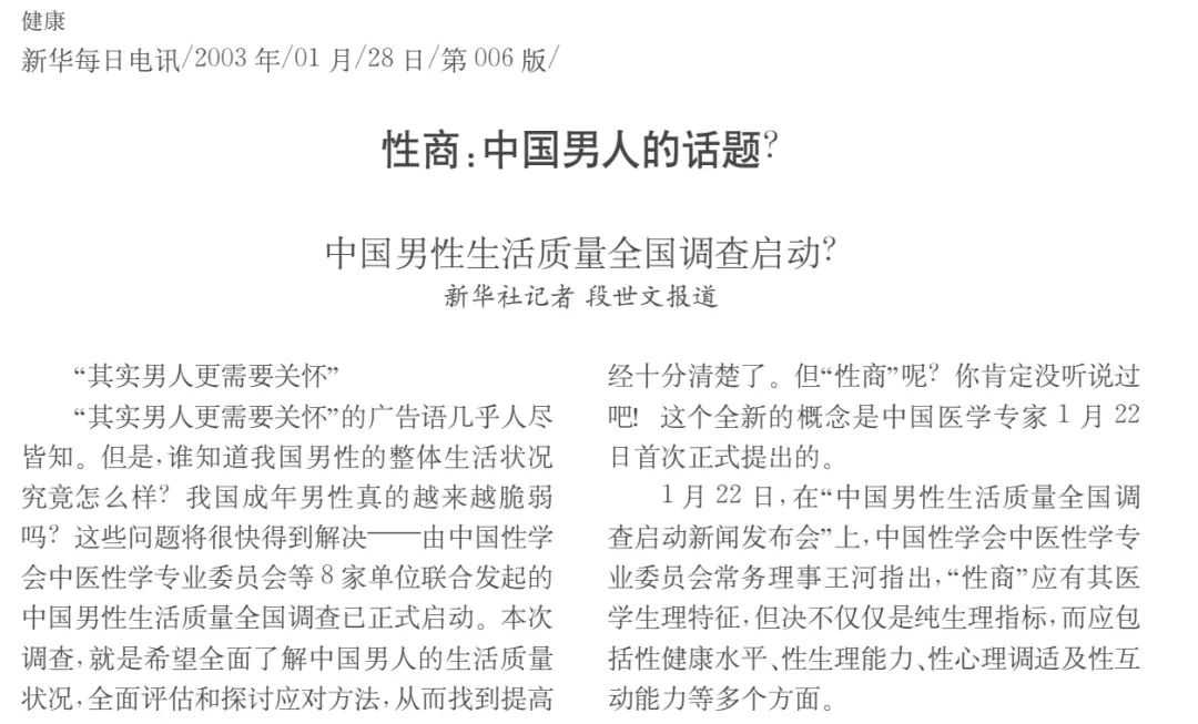 新華社這篇報道的標題是——《性商:中國男人的話題》。