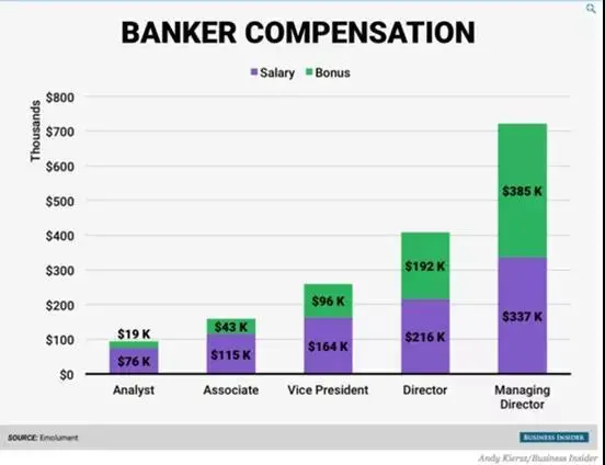 第二,行業的高低差別很大,國外投資行Analyst、Associate、VP、Director、MD這幾個層級,相差幾十倍很正常。