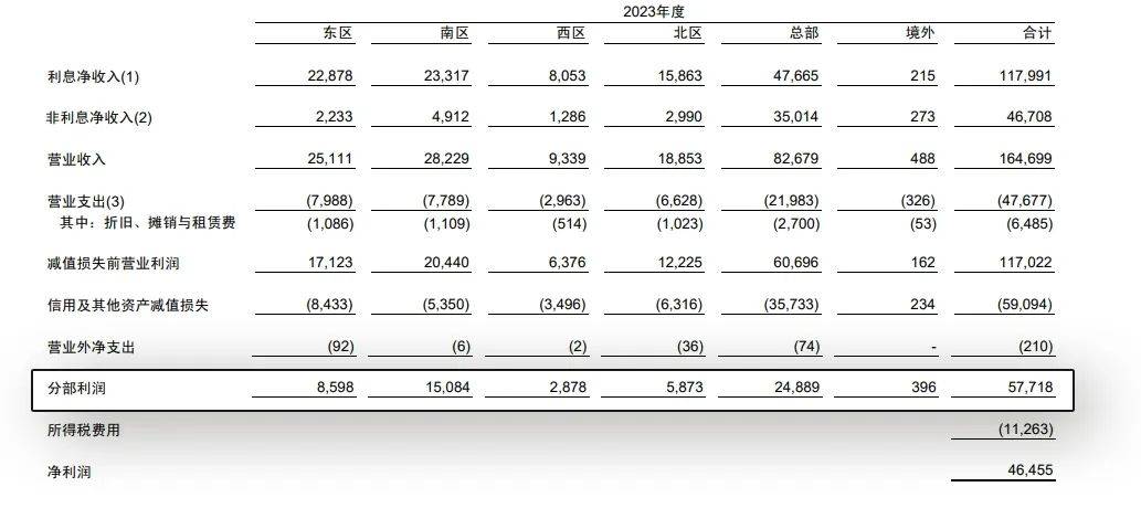 源媒匯發現,2023年平安銀行在營收出現負增長的情況下,利潤能保持增長,很大程度上有賴於南區的利潤增長。2023年平安銀行南區税前利潤150.84億元,同比增長162.79%。而東區、北區、總部的税前利潤均出現大幅下滑。