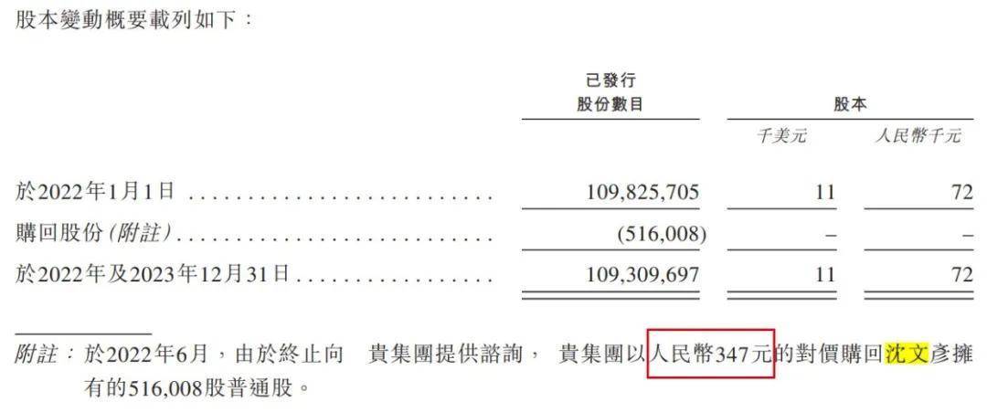 只不過,在2021年11月第四次激勵發行7個月後(2022年6月),公司僅用347元就贖回了沈文彥的51.6萬股普通股。對此,公司給出的解釋是,由於沈文彥不再擔任集團顧問。