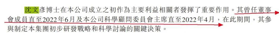 2022年4月、6月,沈文彥先後辭去了公司科學顧問委員會主席、董事職位。早在2017年10月,沈文彥就已經出任董事一職,在職期間參與制定初步研發戰略和科學討論的關鍵決策。
