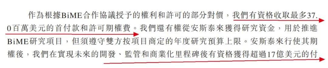 遞表港交所半年前(即2023年12月28日),科望醫藥又與安斯泰來簽訂了合作、期權及許可協議,同意進行最多四個源自BiME®平台的雙特異性巨噬細胞銜接器項目的早期研究,收取最多3700萬美元的首付款和許可期權費。