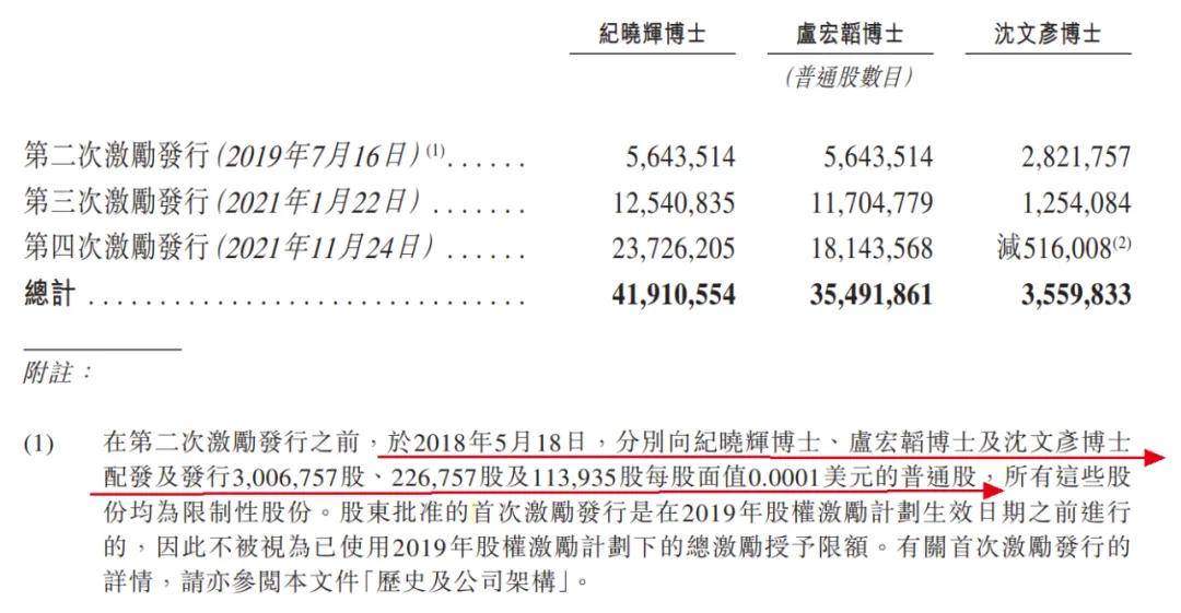 招股書顯示,2018年至2021年,科望醫藥共對紀曉輝、盧宏韜進行過4次股權激勵發行,分別獲得了4492萬股、3572萬股股份。