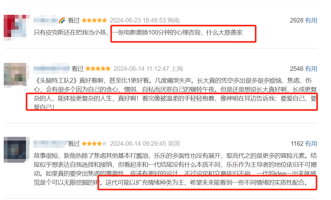 雖然是拍給孩子看的電影,但《頭腦特工隊2》也是一部成年人熱烈討論的電影。在社交媒體上,成年人紛紛表達自己觀影后感慨,稱之為是一部心理學教科書式的電影。甚至有網友在豆瓣上説自己看這部電影,就像是進行了一次心理輔導。