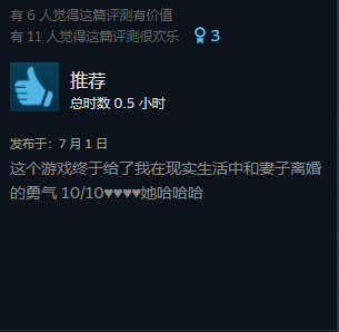 隨後,大家就看到了如果一個製作人完全聽從玩家的意見,會帶來怎樣的結果。評論區第一條留言——“希望加入當按下‘P’鍵時,會和自己的妻子離婚。”