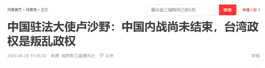 説實話,我認為,盧沙野之所以發出“台灣政權是叛亂政權”的聲音,不太可能是自己的觀點,而是更高層次的授意——對台灣政權進行定性!