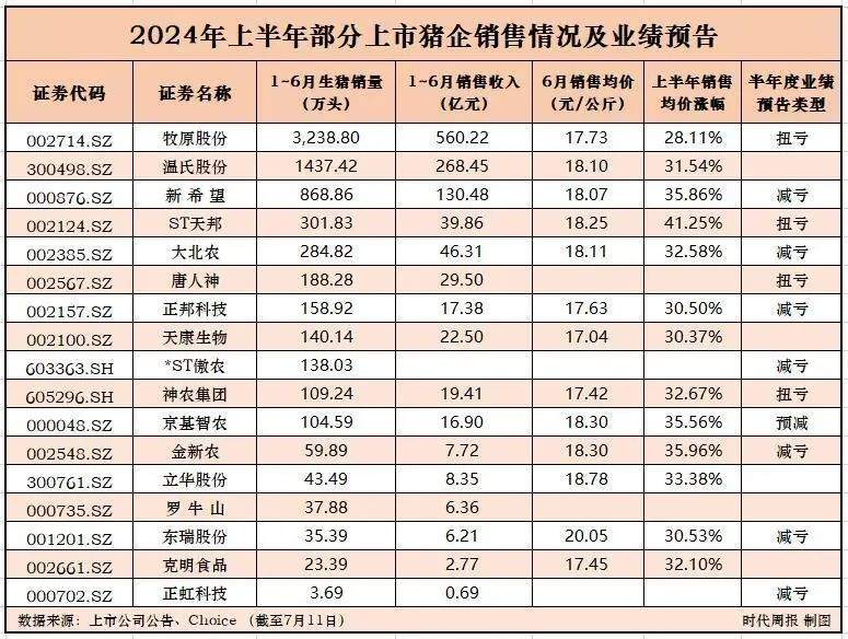 △2024年上半年部分上市豬企銷售情況及業績預告。圖片來源:時代週報 製圖