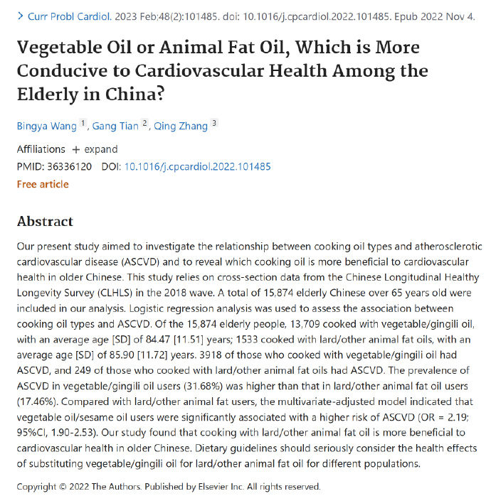 確實在真實世界當中有很多的流行病學證據顯示,比如中國的老年人似乎多吃豬油反而跟動脈粥樣硬化性心血管疾病風險更低相關。