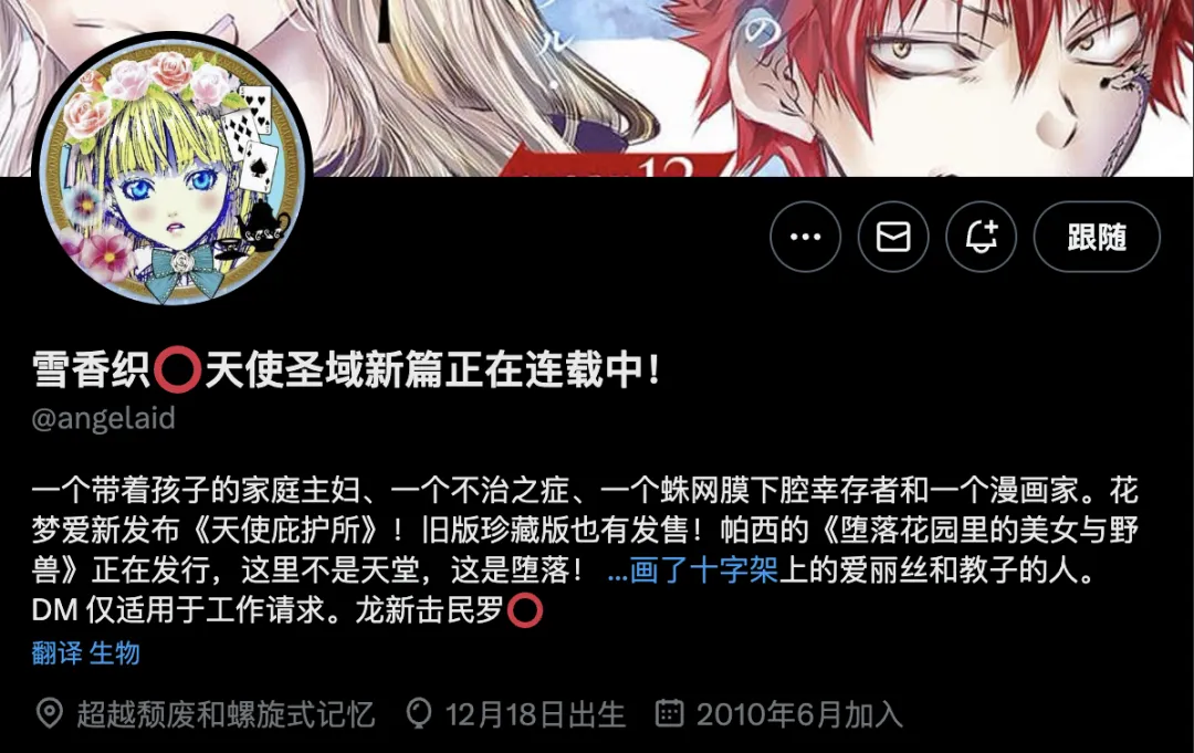 雖然她如今已迴歸漫畫家的身份,但推特的簡介卻永遠變成了**“一個帶着孩子的家庭主婦、一個不治之症、蛛網膜下腔倖存者和一個漫畫家”。**