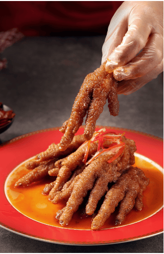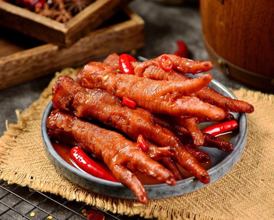 作為國民級小吃的雞爪,出品形式不斷增多,如滷雞爪、虎皮雞爪、泡椒鳳爪、鹽焗鳳爪,除了休閒零食之外,也出現在燒烤攤、串串火鍋店、早茶酒樓、粉面粥鋪……