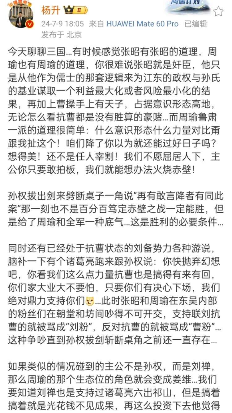 不管是張昭還是周瑜,都是能助主公成事之人。所以需要想明白到底想幹什麼,如果為了一幫除了口high什麼也幫不上的人,搞得周張二人,總是做了無用功還要背鍋,久而久之傷了周瑜與張昭的心,難道真的指望“飯圈粉絲”定國安邦嗎?如果劇本是蜀漢的,那當我沒説,我反正是個技師,東家怎麼説我怎麼幹。