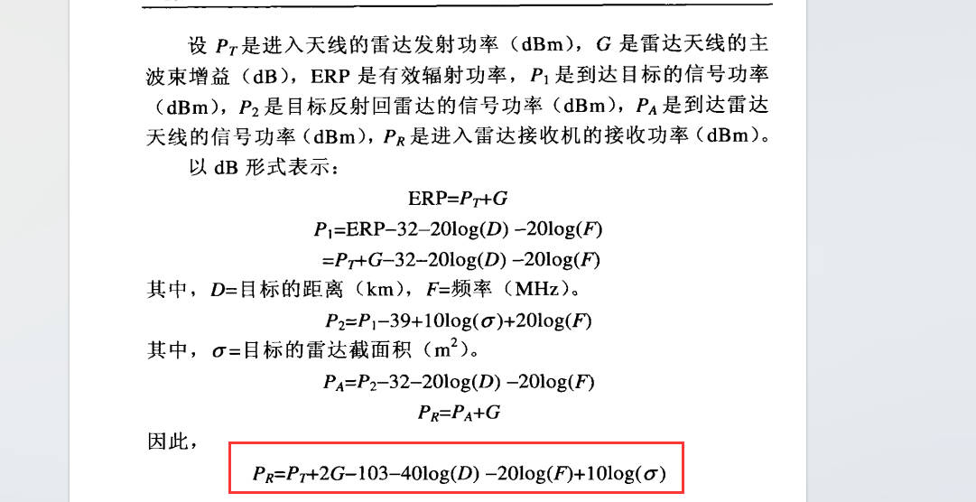 ICBM導彈在起飛段的典型側面RCS是10平米左右。我們首先按距離等於1000公里計算。計算公式如下圖所示。