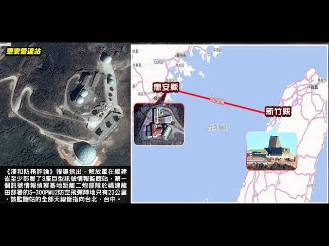 鋪路爪雷達坐落在台北樂山頂峯,海拔高度2600米。而網上一直傳言的福建干擾站位置是在惠安縣以北的山頭上,海拔790米。