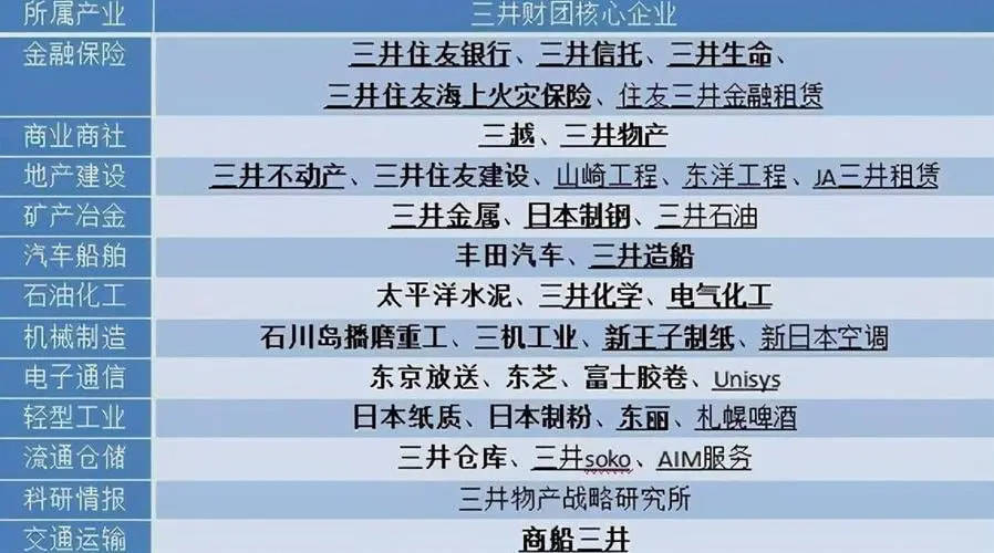 所以自明治維新以來,日本就一直走財閥模式,三井、三菱、住友和安田這四大財閥,基本把國內的產業都瓜分了。