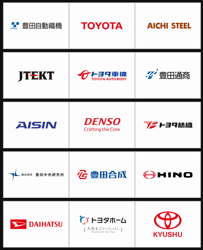 豐田集團一共有十幾家企業,比如豐田自動織機、豐田合成、豐田紡織、豐田通商、愛信精機、日本電裝等等。