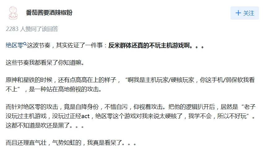這種變化也從側面説明,米哈遊玩家羣體的人員構成的確變了。至於這種變化是好是壞,我無法置評。祛魅是好事,但同時也會產生副作用,比如主機祛魅的同時就產生了一批極端米哈遊公司粉,非要把米家遊戲推上原本主機神作的位置。然後藉此打壓別人。