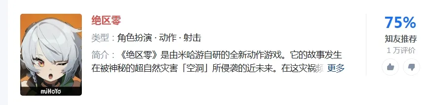 在TapTap和B站等平台,遊戲的評分也沒有多高,最支持《絕區零》的社區可能是知乎,給了75%(開服時77%)的支持率。