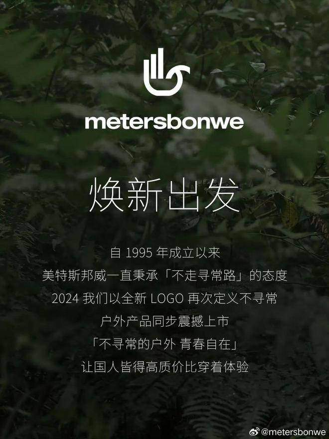 前不久,美邦官宣了名為「玄鳳」的全新logo,介紹靈感來源於公司29年前設計的草圖。另外,還打出了「不尋常的户外 青春自在」的全新slogan。