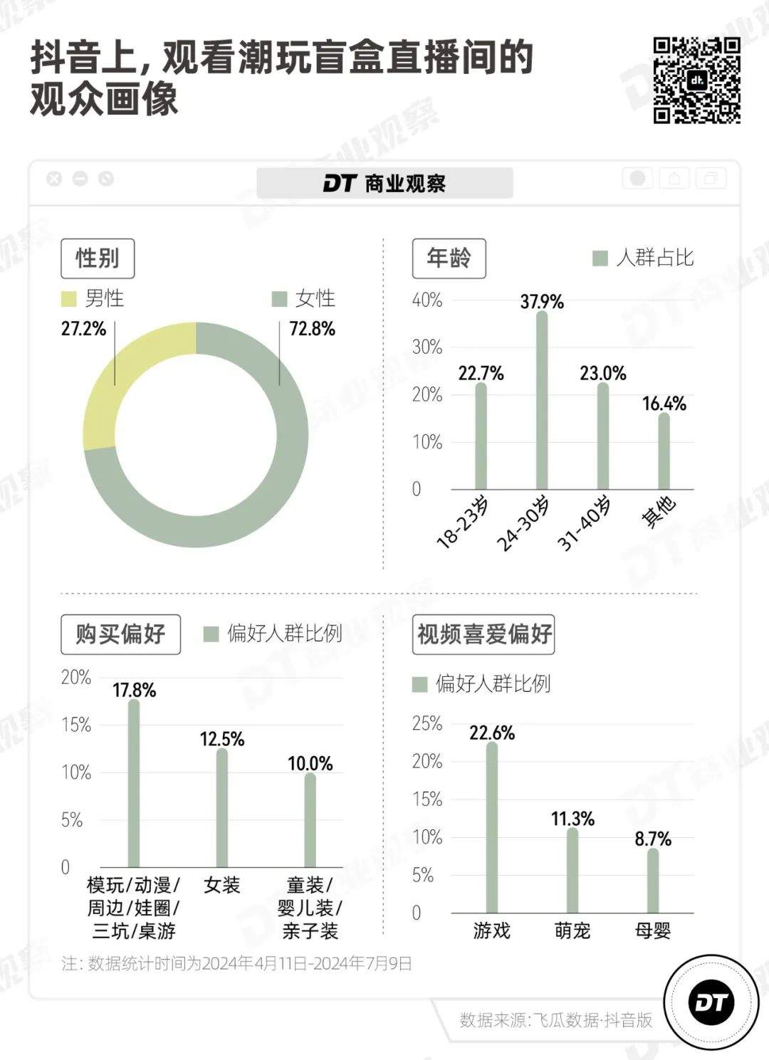在抖音看拆卡直播間的人,主要以喜歡二次元和遊戲的女性羣體為主——從以模型玩具、動漫、三坑為主的購買偏好、和以遊戲為主的視頻喜愛偏好中可以看出。其次還有一部分給自己小孩買卡、抽卡的家長。