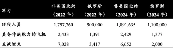 表2:俄羅斯與(非美國)北約軍力對比