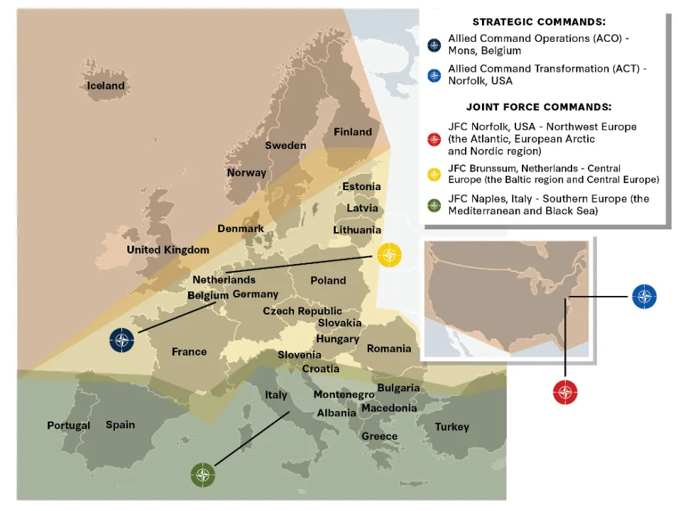 隨着芬蘭和瑞典加入,為北約帶來了新的C2安排需求。北約最新的聯合部隊戰略司令部(JFC Norfolk,JFCNF),負責監督西北歐地區計劃,已於2021年7月全面運作。隨着芬蘭和瑞典的加入,JFCNF的責任區域和任務發生了顯著變化,北歐國家在JFCNF的指揮下形成了政治共識。為了適應這一重組,JFCNF正在擴展其規模,並計劃在2025年實現全面整合。JFCNF已經做好了準備,在“堅定後衞”演習期間成功指揮了為期一個月的演習。