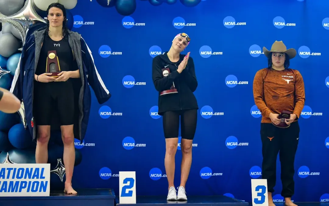 ▲2022年3月,跨性別選手莉亞·托馬斯(左)在全美大學游泳比賽******女子自由泳500碼項目中奪冠。就此多名美國女性運動員公開表示反對,並向美國大學體育協會提起訴訟要求取消托馬斯的成績。******