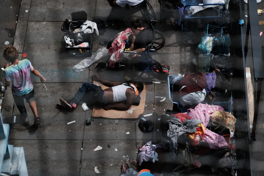 ▲2021年7月19日,美國費城,肯辛頓街頭毒品吸食者成羣。
