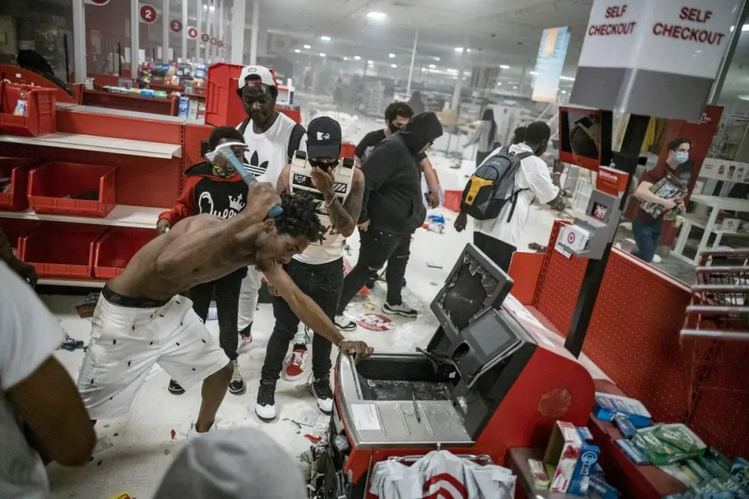▲2020年5月,美國明尼蘇達州爆發騷亂,******示威者打砸搶劫明尼阿波利斯市一家超市。**四