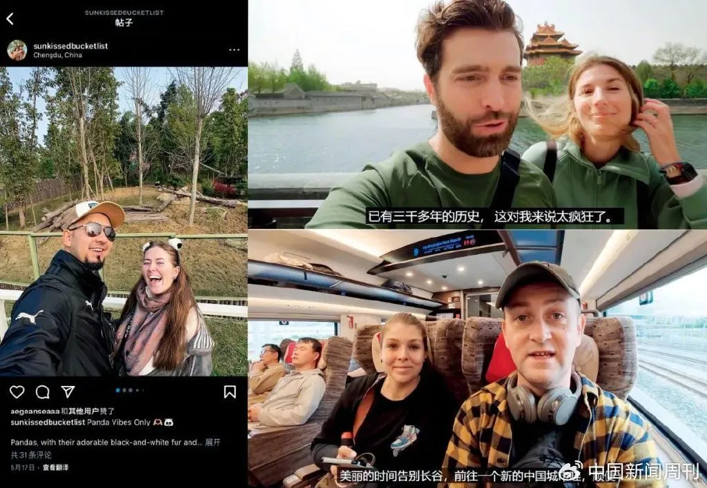 “中國開放了免籤,意味着為更多人提供了環遊全國的機會,能夠體驗文化、與當地人交流、享受食物,它有助於消除人們多年以來的偏見。在西方,很多人並沒有以積極的方式看待中國。”6月26日,在“蜜雪夫婦”的一則總結視頻中,Taz説道。“過去幾年的旅行經歷教會我們的是,抱以開闊的態度,建立自己的理解,而不被輕易地引導。每個地方都不是完美的,這並不是指要對缺點視而不見。”Libby則表示。在深圳街頭,他們遇見了幾位中國粉絲,大家一起擁抱、合影。“在線上,他們的評論總能特別棒地幫助我們計劃旅程,線下遇到他們就更酷了,能夠聽到他們説喜歡我們的內容,看到他們的笑容。”Taz和Libby告訴《中國新聞週刊》,他們相信視頻也已經對有興趣來中國旅遊的西方粉絲產生影響。“對我們來説一個很大的文化衝擊是,中國內部存在完全不同的現實,可能與西方世界的認知非常脱節。”Two Mad Explorers 中的博主Luke以“安全”為例表示,西方媒體經常將中國表述為對外國人來説非常不安全的國家,但在重慶的一家理髮店落下手機的經歷令他難忘,“半小時後我才回去找,發現手機就放在原地。但在我的老家,可能2分鐘後就會不見。”“我平時聽到外國遊客對中國最高的評價,依次有安全、互聯網便利、環境乾淨、人民很友好、性價比很高等。”在上海組織city bike(城市騎行)項目的導遊劉禮超説。