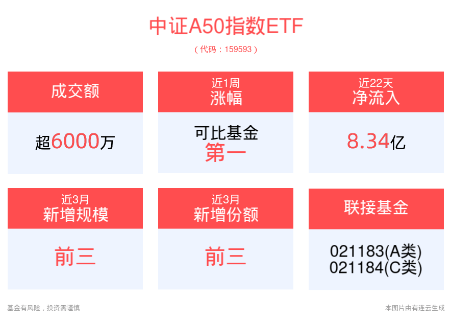 中證A50指數ETF(159593),場外聯接(A類:021183;C類:021184)。