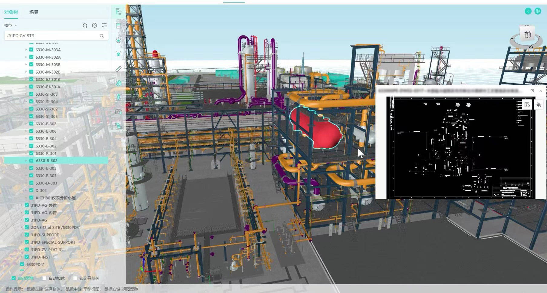 圖為技術T-Plant OS作為面向流程工業的三維數字化工廠信息管理平台,以工程對象為中心,依託工程編碼體系,構建數據與數據間的關聯網絡,對多源數據與模型進行精細化分類管理,為後續的數據挖掘、分析、應用和優化重組奠定了基礎。
