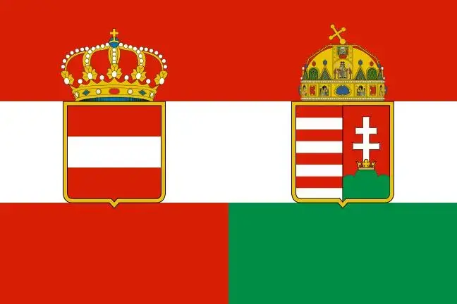 ▲奧匈國旗,左邊代表奧地利,右邊代表匈牙利