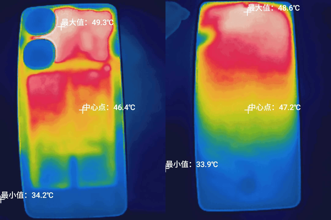 別看背面温度達到 49 度多,但因為是塑料中框 + 素皮背殼,並不燙手,只不過。。。玩了十幾分鍾,這手機正面屏幕就開始由熱變燙了。