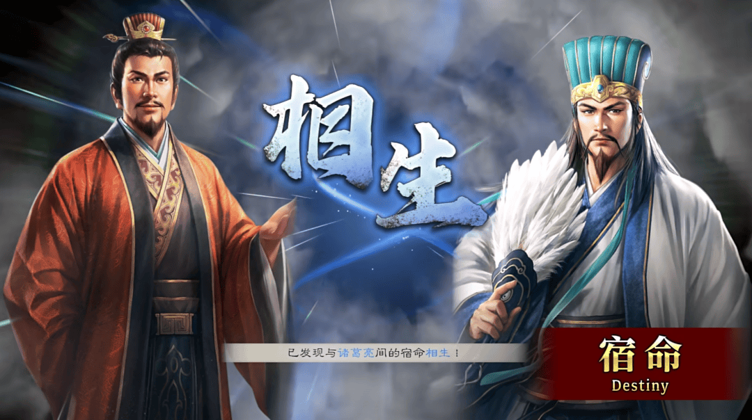 隨着定檔消息放出的還有遊戲的最新版PV,從中可以看到相較於之前宣傳,又公開了不少玩法系統上的新內容——例如在不同武將間構成相生相剋關係的“宿命”系統,並由此衍生出“合作”的可能性。相生相剋關係的基礎依據史實而來,但也會根據玩家的不斷抉擇而產生變化。