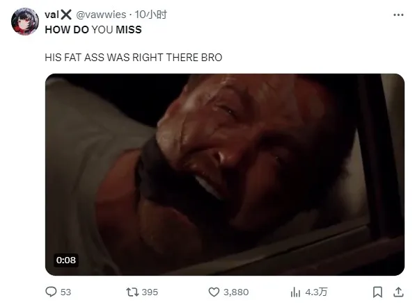 由於川普在網友心中過往的形象,不少喜歡地獄段子和民主黨派的人士甚至在網上開起了玩笑,“How do you miss”(你咋就打偏了呢!)這個詞甚至一度衝上推特熱搜:
