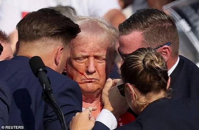 話音剛落,8到10聲槍響響起,特朗普捂住右耳,鮮血順着指縫流下。